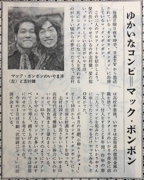 ドリフターズの付き人時代から、コメディアン路線を目指してた志村さんは、付き人同士で『マック・ボンボン』を結成。